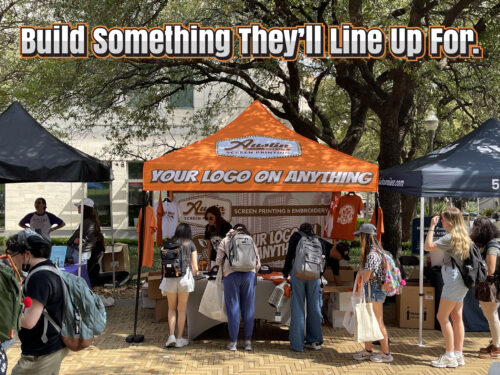 A few years back, we revived an old Austin Screen Printing tradition: attending UT Marketplace, an event hosted by Texas Student Media where vendors set up on campus and connect with students.